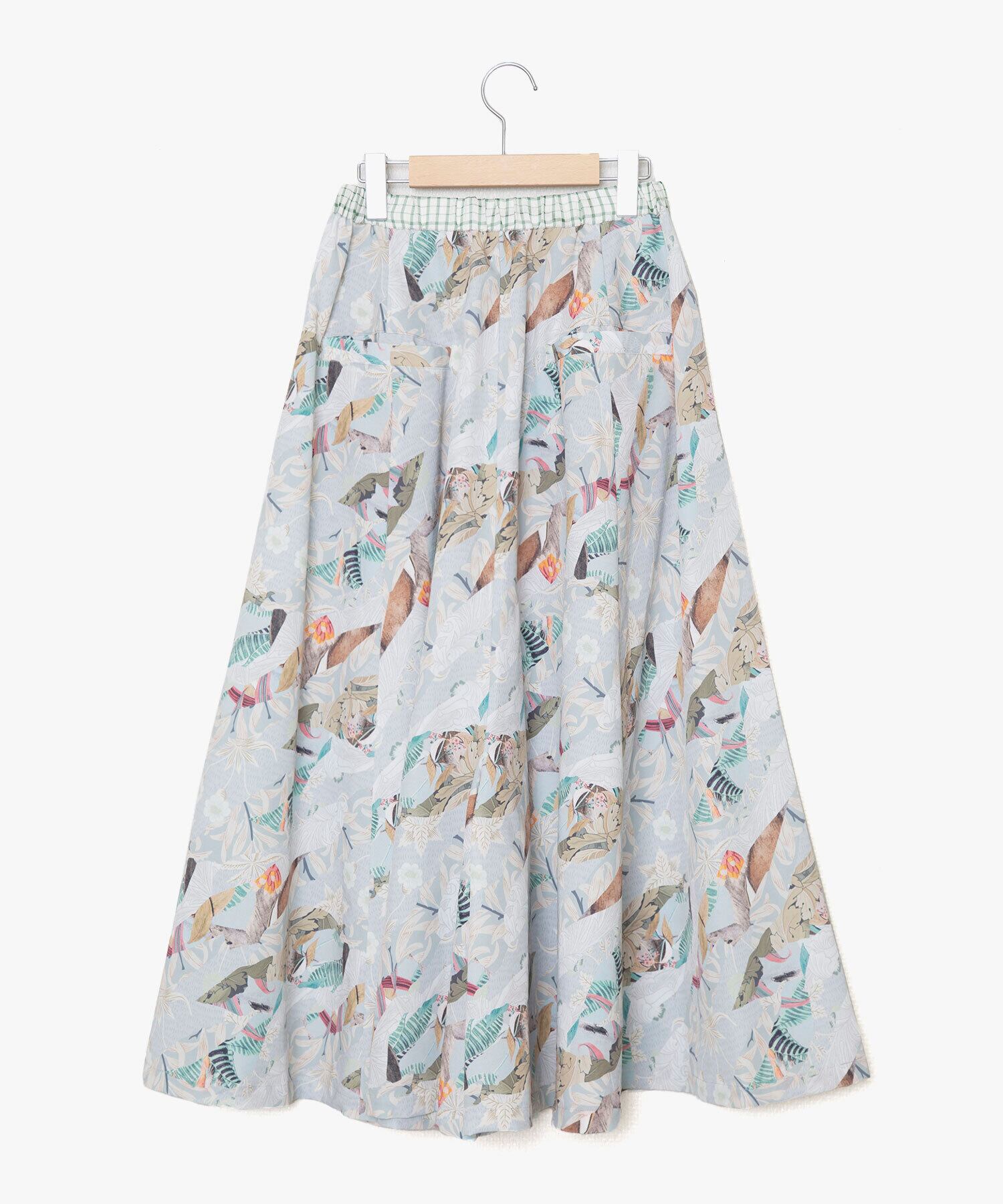 アーツ&クラフツをイメージして再構築したオリジナルプリントの生地を使ったベッドサイドドラマの定番サーキュラーパンツ。