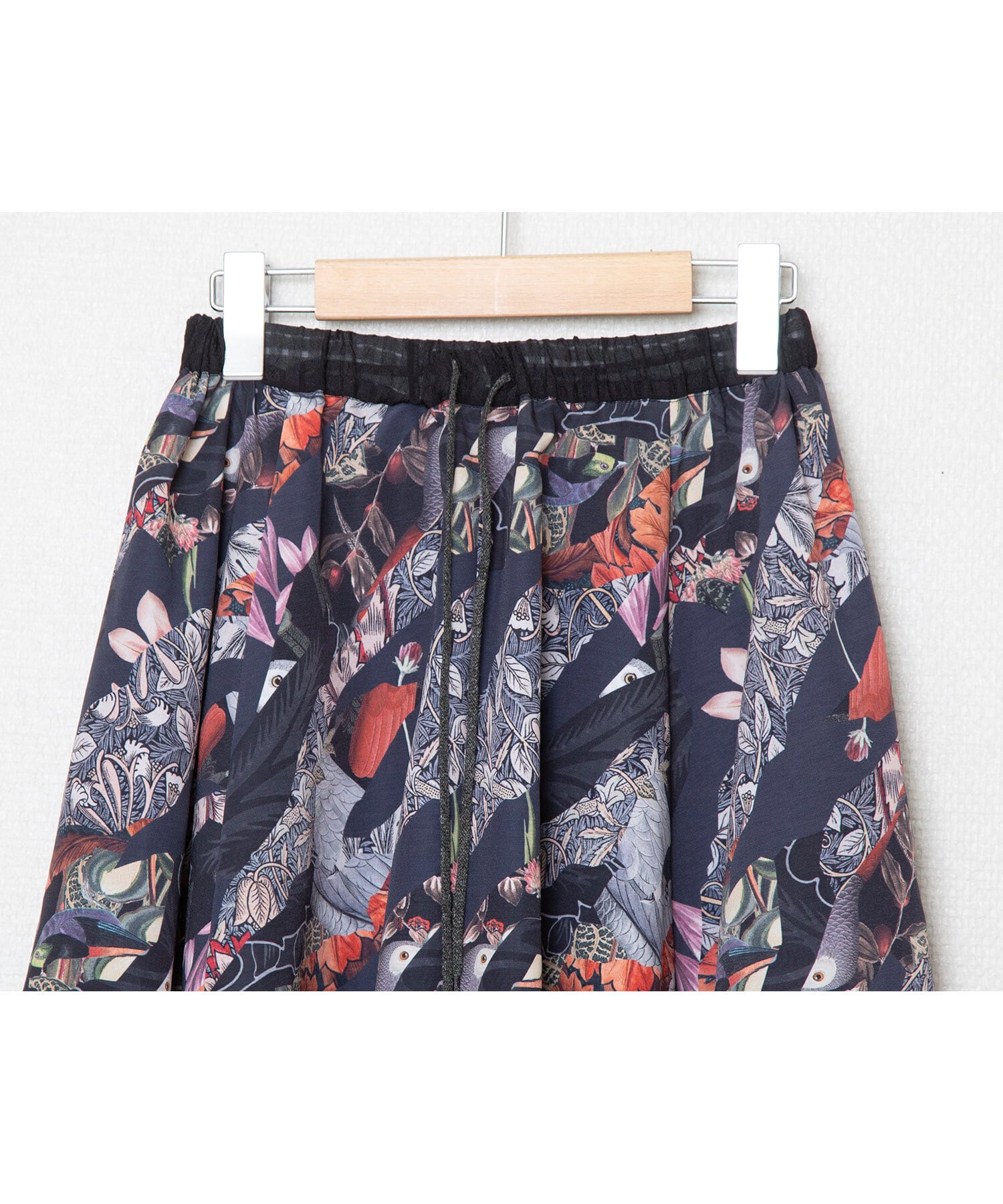 アーツ&クラフツをイメージして再構築したオリジナルプリントの生地を使ったベッドサイドドラマの定番サーキュラーパンツ。