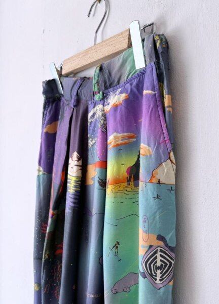 ハワイの風景に海の怪物たちが浮世絵調でデザインされたシリーズです。海の生物や人や妖怪やモンスターたちが見え隠れしている柄は、見るたび新しい発見があります。サイズはMとLの2サイズ。