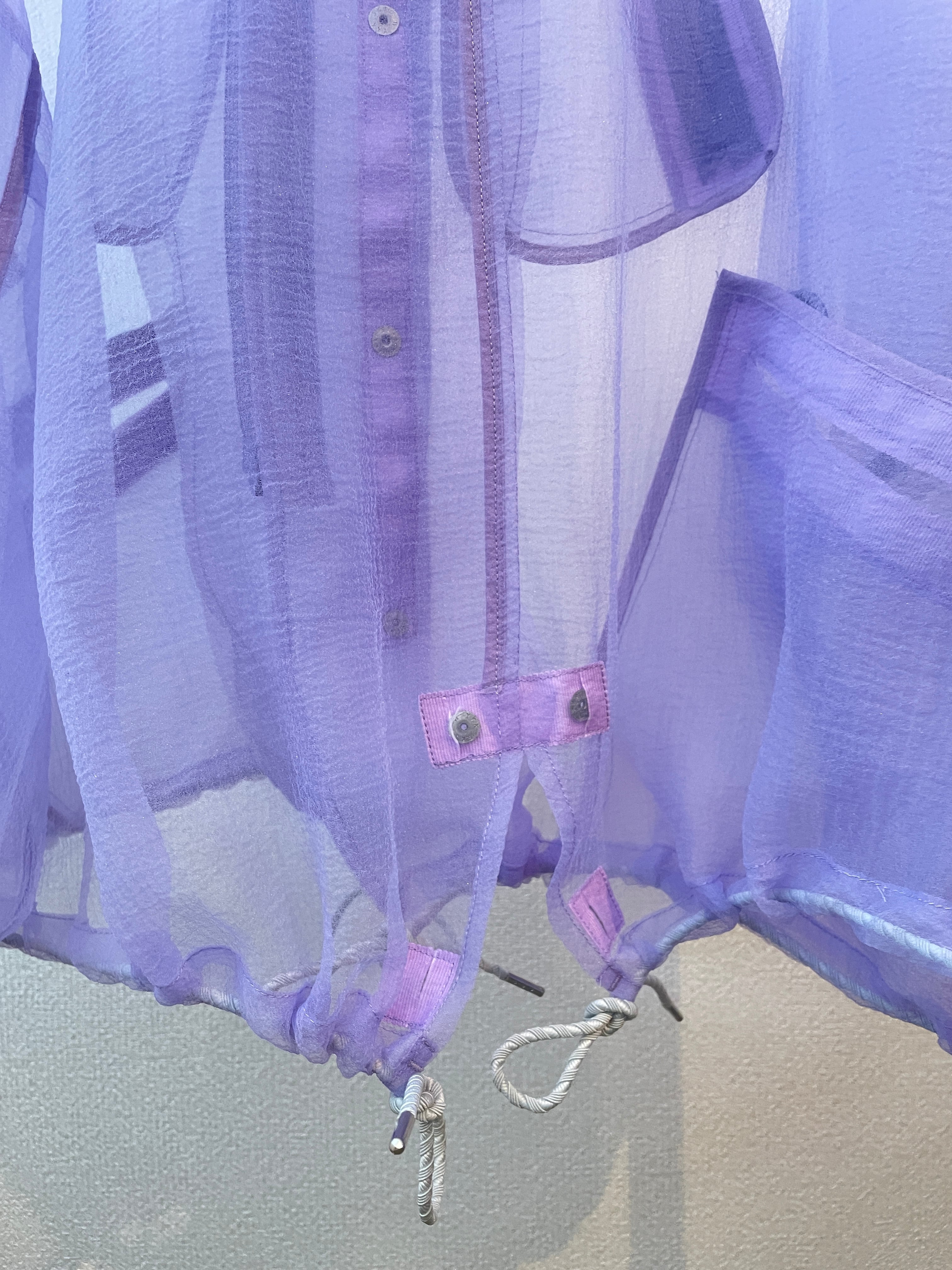 特徴的なシボ感とシャリ感を併せ持つ、軽やかな国産オーガンジー素材を使用。