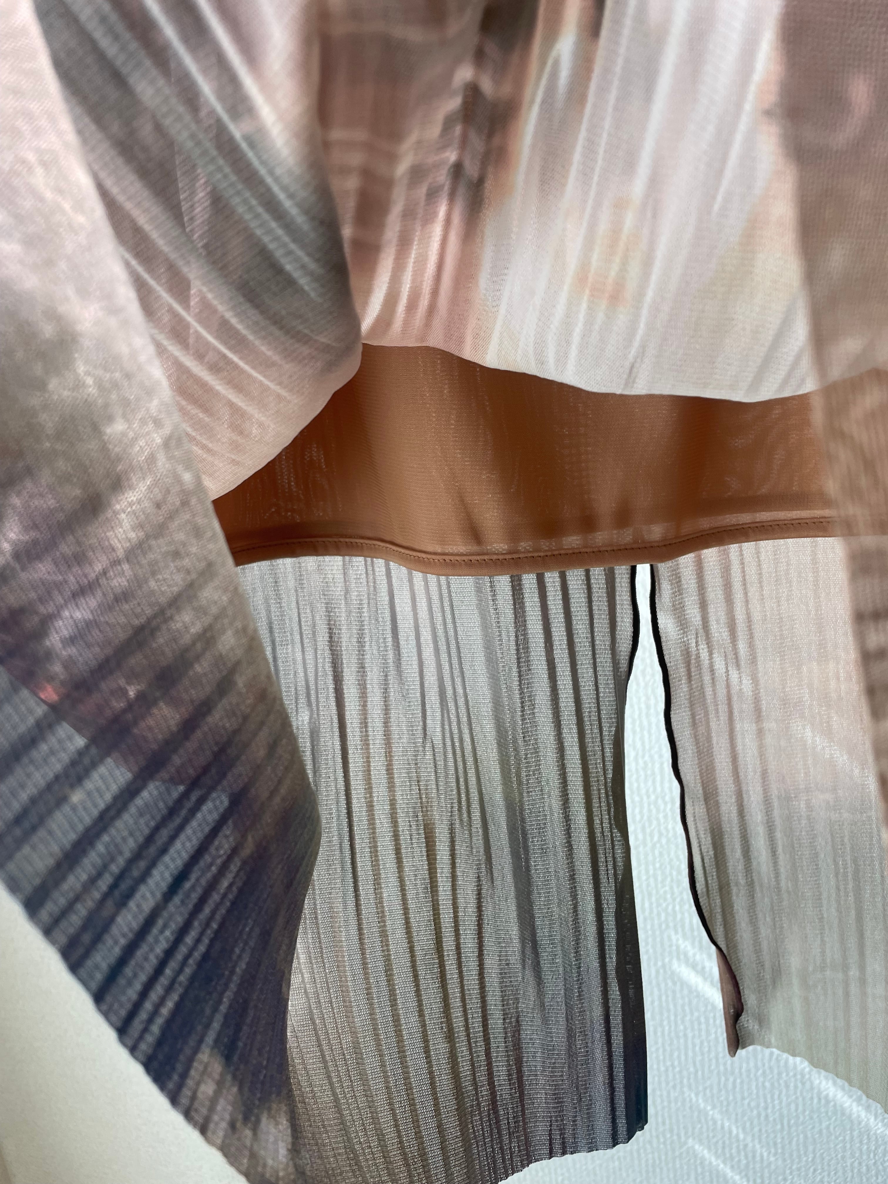 シアーなチュール素材にオリジナルのプリントを施したプリーツスカート